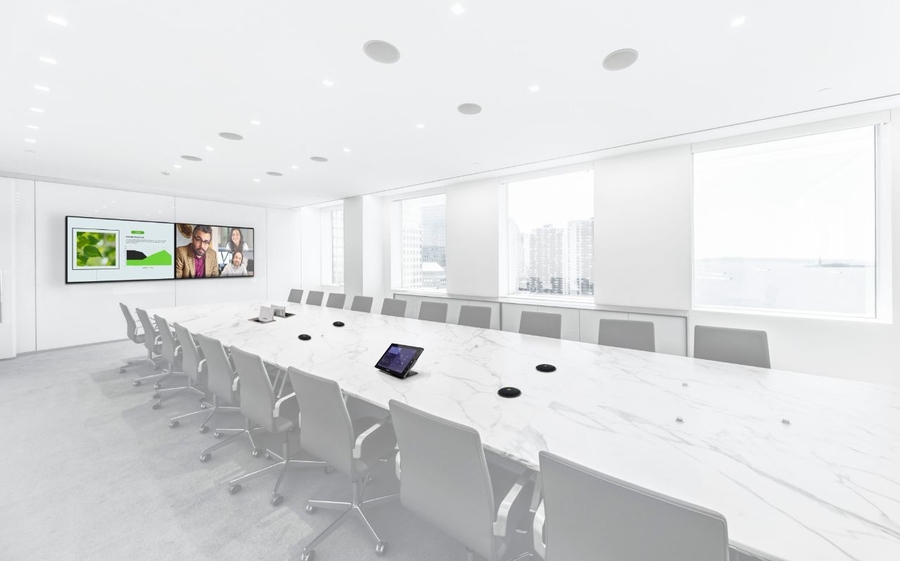One of the best microphones for crystal-clear audio is a ceiling array. Ceiling array microphones and loudspeakers work together to focus on the person talking, ensuring every word comes out accurately and reducing any background noise.