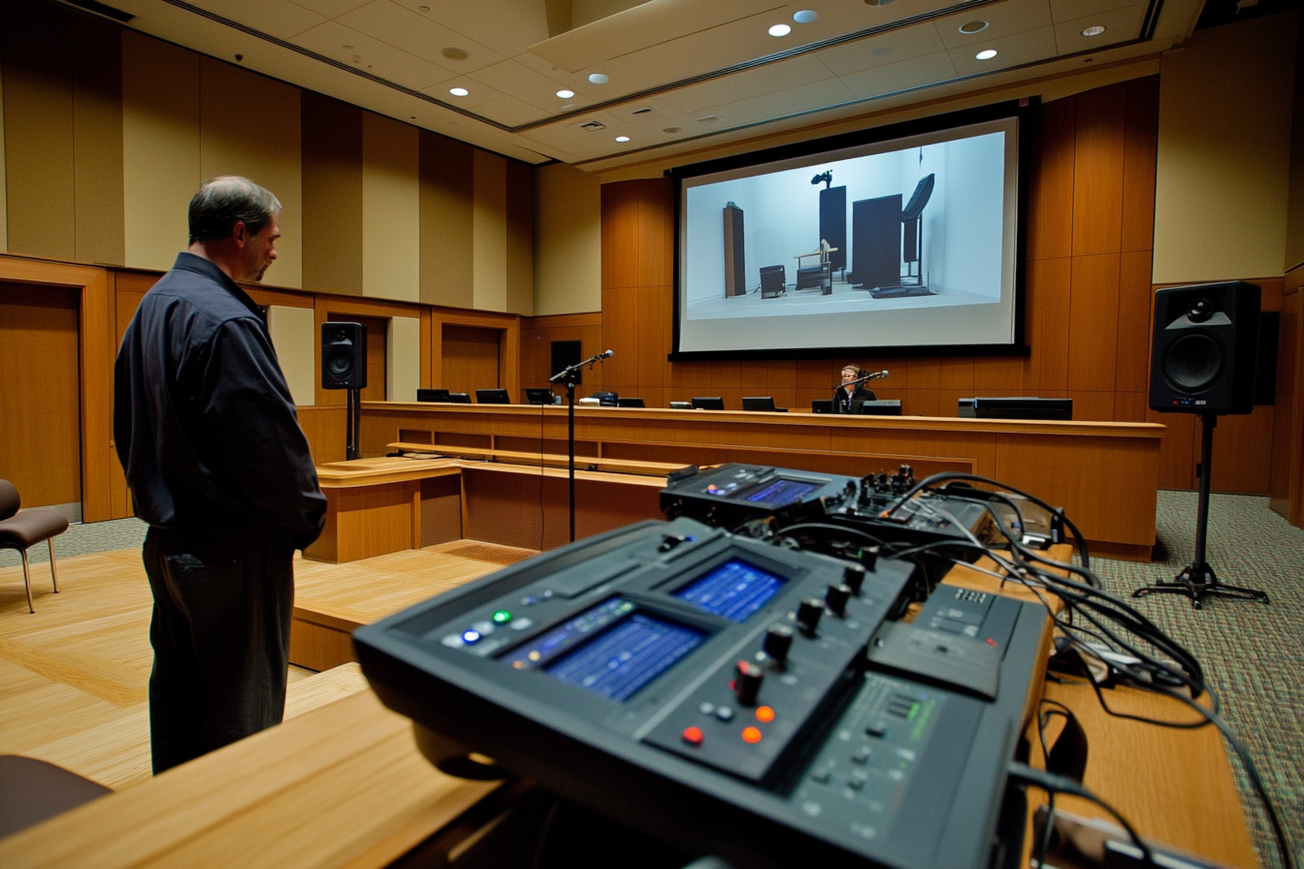 Modern audiovisual systems allow courtrooms to display digital evidence on large monitors or projection screens. Attorneys can present visual information directly from computers or document cameras while maintaining clear visibility for jurors and the judge.